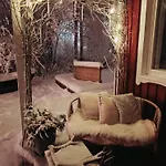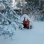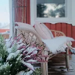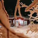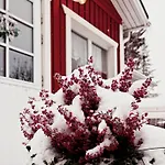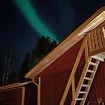 ビオ・レックスから4.4km離れた所離れたところにあるRed Wooden House In ロヴァニエミ 別荘には、庭園の景色を望むテラスがあります。